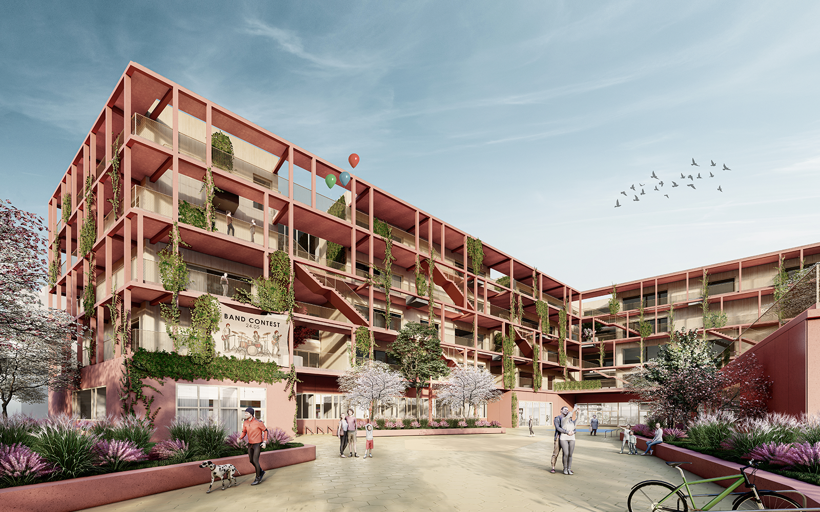 Teile des Vorplatzes und der Freiflächen stehen auch der Öffentlichkeit zur Verfügung – als Sport- und Spielflächen für das gesamte Quartier. Das Gebäude ist als Holz-Stahlbeton-Hybridbau konzipiert, mit flexiblen Strukturen, die spätere Erweiterungen ermöglichen. Photovoltaik auf dem Dach und eine hocheffiziente Wärmepumpe versorgen das Gebäude mit Energie – so ist der Campus darauf ausgelegt, die Klimaziele der Stadt Wien bereits ab dem ersten Betriebsjahr zu erfüllen.